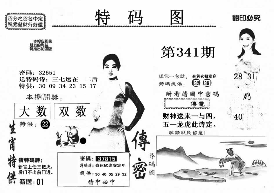 | 341期: 《12码中特》「37.49.20.32.07.19.17.29.28.40.10.22」开:000准 |